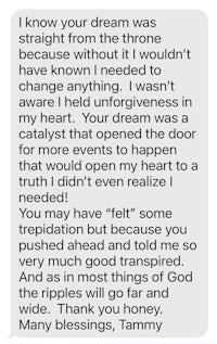 Trina provided me with a dream come true. I got to experience a much desired healing.