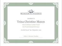 In September 2024 she became certified in the school of ministry and soul wound healing and deliverance. On November 3rd she had an even greater deliverance that brought her even deeper into her identity in Christ Jesus.